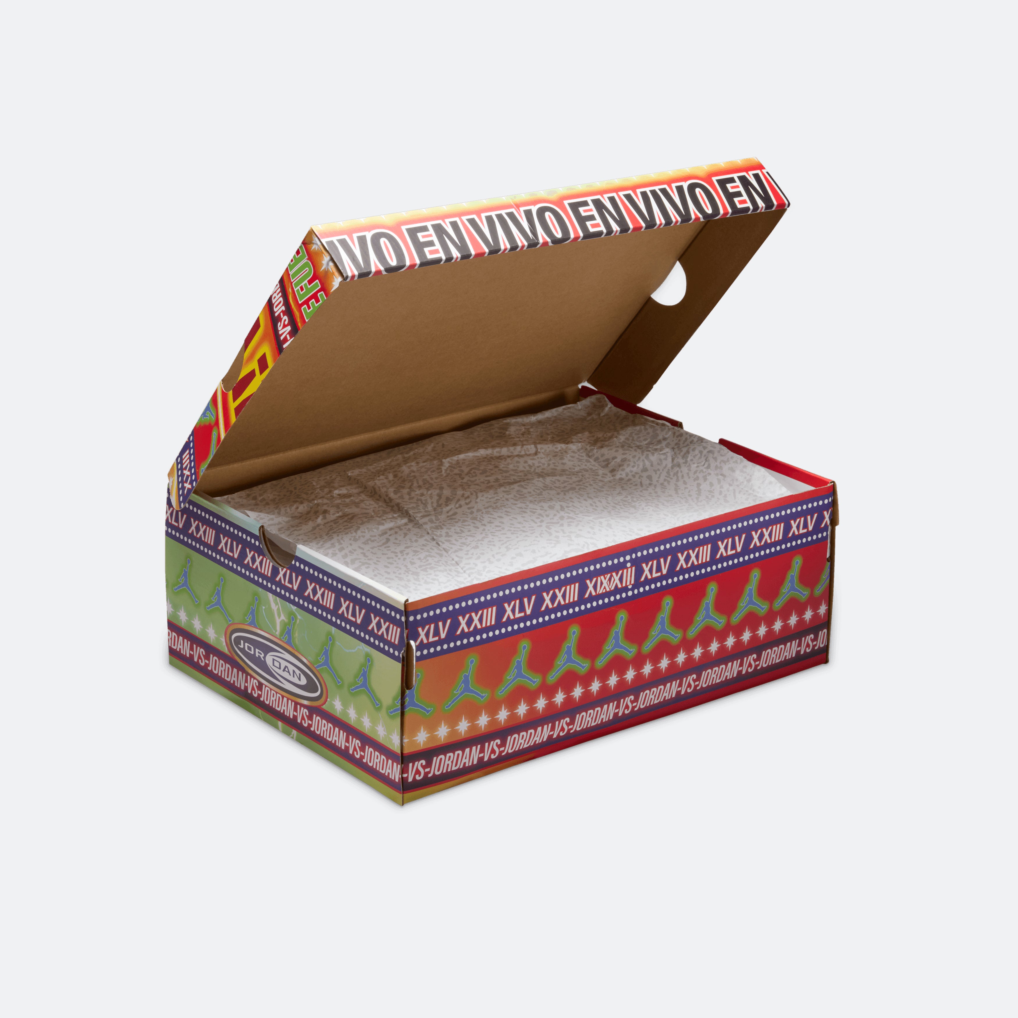 Special shoes deserve special packaging. These sneakers come with a box designed to look like promotional posters advertising high-flying lucha libre matches.